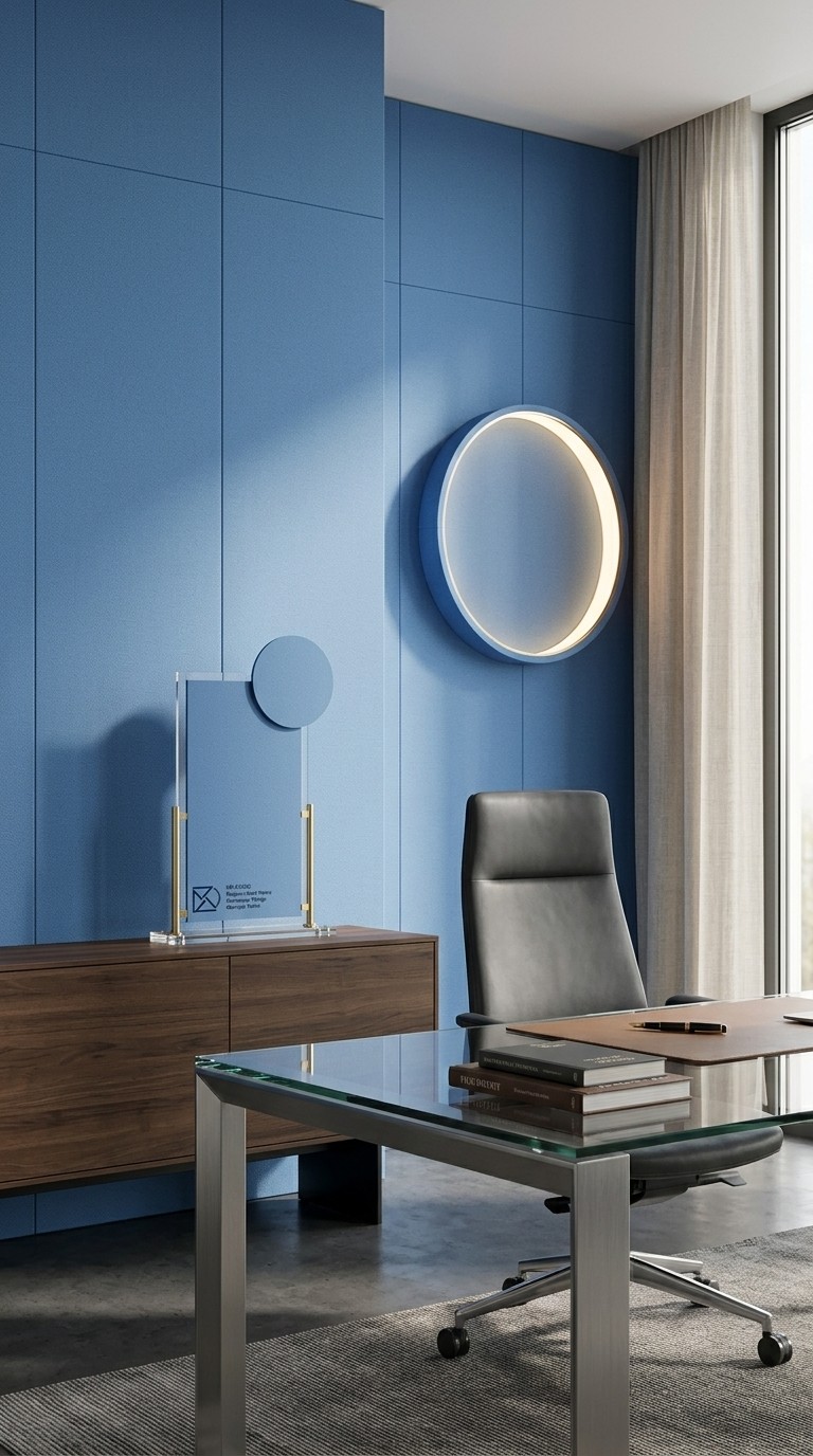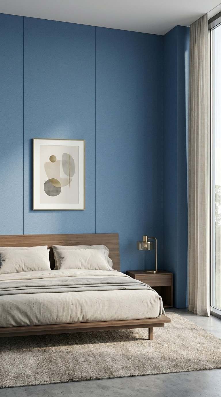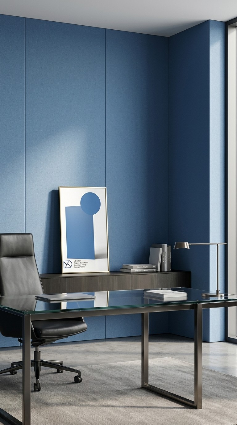 Minimalistik va loft interyer uchun tinchlantiruvchi moviy.
